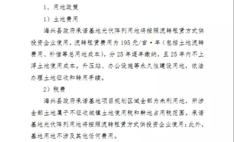 同時(shí),該文件在土地類型及成本一欄明確要求,基地場址必須屬于國家允許建設(shè)光伏電站的土地,產(chǎn)權(quán)清晰,土地流轉(zhuǎn)價(jià)格較低(或不收取土地租金的國有未利用土地)?;厮谑校h)政府應(yīng)確認(rèn)基地光伏陣列所占用土地屬于不征收城鎮(zhèn)土地使用稅和耕地占用稅范圍,并明確按用地面積計(jì)列的所有費(fèi)用以及土地足額交付使用的期限。