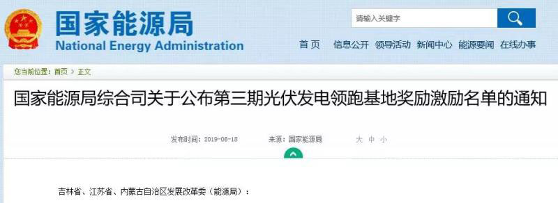 根據《關于推進光伏發(fā)電“領跑者”計劃實施和2017年領跑基地建設有關要求的通知》(國能發(fā)新能〔2017〕54號)和《關于光伏發(fā)電領跑基地獎勵激勵有關事項的通知》(國能綜通新能〔2018〕168號),經地方政府自愿申報、省級能源主管部門初審上報、我局組織核實并對外公示,確定內蒙古達拉特、吉林白城、江蘇泗洪3個基地為第三期光伏發(fā)電領跑獎勵激勵基地,每個基地獎勵激勵規(guī)模為50萬千瓦。現將有關要求通知如下。