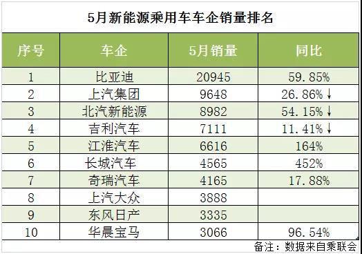 上汽大眾、華晨寶馬、東風日產(chǎn)等合資品牌強勢擠進前十。其中上汽大眾5月銷售3888輛位列5月新能源乘用車銷量榜第8名,較4月排名下降了4個名次。