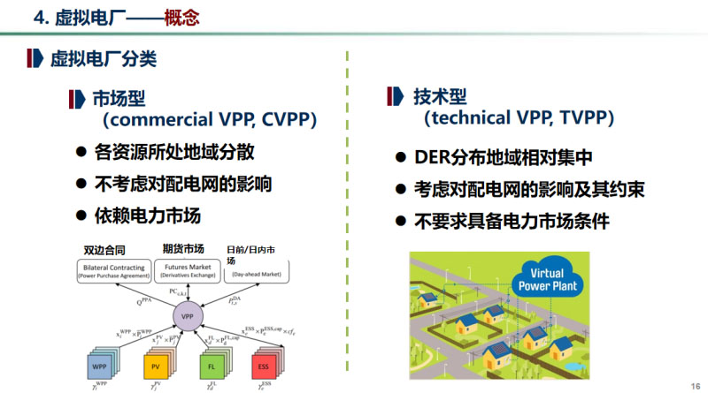 虛擬電廠分為市場(chǎng)型和技術(shù)型,國內(nèi)外已經(jīng)開展了前期基礎(chǔ)研究和示范應(yīng)用,2011年丹麥EDISON項(xiàng)目示范了電動(dòng)汽車虛擬電廠,開展了電動(dòng)汽車的匯聚管理軟件、通訊、終端裝置的示范工程。2010年日本Yokohama智能社區(qū)示范了電池儲(chǔ)能虛擬電廠,研究了分布式電池儲(chǔ)能單元匯聚管理,向電網(wǎng)提供調(diào)頻、削峰等輔助服務(wù)。2012年德國 Vattenfall示范了居民負(fù)荷虛擬電廠,與用戶簽訂供熱合同,將熱泵、微型燃?xì)廨啓C(jī)通過通訊和控制系統(tǒng)接入虛擬電廠。但虛擬電廠要真正做到可持續(xù)推廣,一定要有很好的經(jīng)濟(jì)性,用戶、電網(wǎng)都共同獲益。