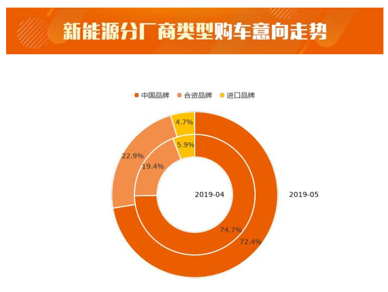 5月,中國品牌用戶購車意向占比相比上月,降低2.3個(gè)百分點(diǎn),達(dá)到72.4%,用戶意向占比有所下滑。合資品牌用戶購車意向占比為22.9%,相對(duì)上月上升3.5%。進(jìn)口品牌用戶購車意向占比呈現(xiàn)下滑走勢(shì)。中國品牌在新能源市場仍居絕對(duì)主力,但隨著合資企業(yè)在新能源領(lǐng)域的加速布局及外資品牌的進(jìn)入,新能源領(lǐng)域的市場競爭將會(huì)加劇,產(chǎn)業(yè)鏈整合也會(huì)加速,這對(duì)于期望通過新能源汽車實(shí)現(xiàn)彎道超車的中國品牌來說,是一個(gè)嚴(yán)峻的考驗(yàn)。后補(bǔ)貼時(shí)代,唯有真正掌握核心技術(shù)的企業(yè)才會(huì)具備競爭優(yōu)勢(shì)。