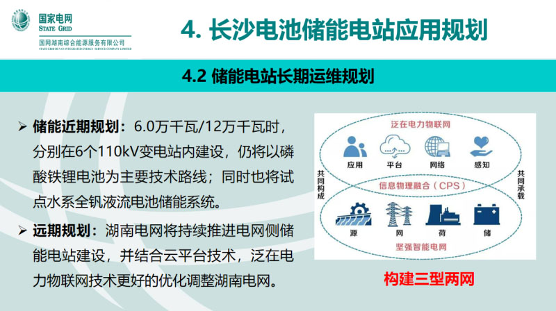 長沙儲(chǔ)能電站二期的工程建設(shè),也是60兆瓦、120兆瓦時(shí),現(xiàn)在確定是建在6個(gè)110kv變電站周邊,主要采用磷酸鐵鋰技術(shù)路線,同時(shí)會(huì)試點(diǎn)全釩液流電池的儲(chǔ)能系統(tǒng)。因?yàn)楝F(xiàn)在全國都在做云平臺(tái)的技術(shù),泛在電力物聯(lián)網(wǎng),將來會(huì)結(jié)合這個(gè)技術(shù)做一個(gè)更大規(guī)模的聚合式的儲(chǔ)能電站,把儲(chǔ)能的電站利用到電網(wǎng)結(jié)構(gòu)的調(diào)整上面來。