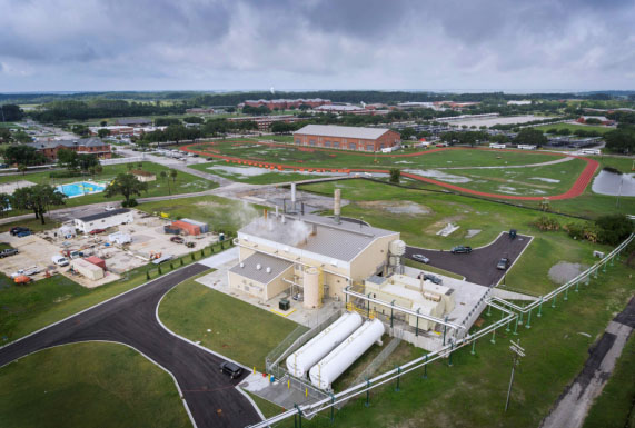 Ameresco公司在項目建設(shè)中,建設(shè)一座裝機容量為3.5MW熱電聯(lián)產(chǎn)(CHP)發(fā)電廠和部署三臺柴油發(fā)電機替換老化的發(fā)電廠,用于備用發(fā)電,并在車庫和地面安裝20,000個太陽能電池板,其裝機總?cè)萘繛?.5MW。