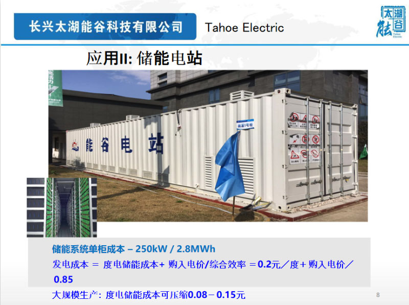 這個(gè)是儲(chǔ)能電站應(yīng)用,它的度電成本,我們現(xiàn)在充放一次在兩毛錢(qián)左右的度電成本,如果大規(guī)模的應(yīng)用,我們認(rèn)為度電成本基本可以接近抽水蓄能電站,在一毛錢(qián)左右的水平。