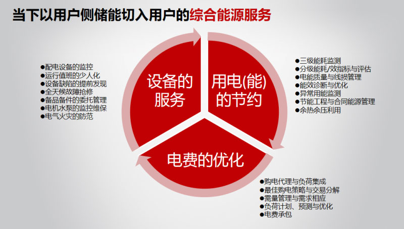 現(xiàn)在能做什么事兒呢?現(xiàn)在能做的事情也是很多人在做的事情,就是我們通過做儲能去介入到用戶的綜合能源服務(wù),這是當(dāng)下肯定可以做的,雖然市場還不夠成熟。儲能可以做基本的峰谷價(jià)差,最大需量、最大容量的控制,我們也可以做用戶節(jié)能的控制。