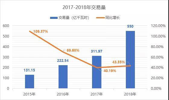 2018年,福建省全省共有61家電廠、37家售電公司、1012家用戶參與交易,共完成交易電量約550億千瓦時(shí)、同比增長約45%,交易電量約占全社會(huì)用電量的24%、工業(yè)用電量的37%。
