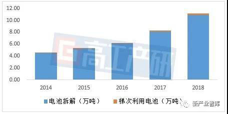 2014-2018年中國鋰電池拆解與梯次利用規(guī)模(單位:萬噸)