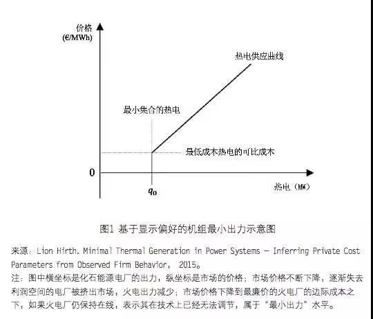? 向下的調(diào)峰涉及最小出力問(wèn)題, 這方面的討論仍舊是非常不透明的。如果系統(tǒng)所有的機(jī)組都實(shí)現(xiàn)了最小出力,那么 證明系統(tǒng)存在嚴(yán)重的供大于求,價(jià)格需要大幅跌落,以將盡可能多的出力擠出。電 價(jià)不斷下降到低于燃料成本的程度(比如 0.1 元 / 千瓦時(shí)—0.15 元 / 千瓦時(shí)),靈活 的煤電就寧愿盡可能地停機(jī),而不愿意留在序列里承擔(dān)虧錢(qián)的損失了。那么剩下的, 就是的確“往下調(diào)不了”或者不足夠靈活參與下一階段市場(chǎng)的那部分。這種基于“顯 示偏好”的最小出力,往往比測(cè)算出的技術(shù)性最小出力要準(zhǔn)確得多(見(jiàn)圖1)。