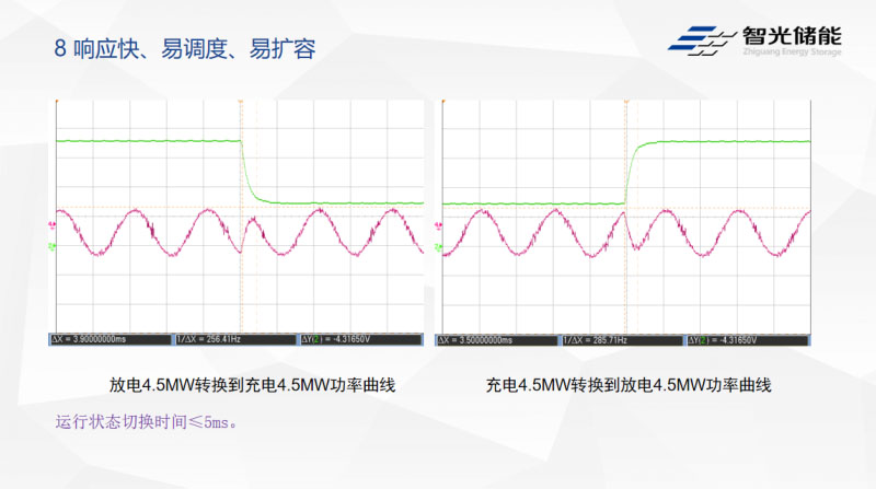 級聯(lián)型儲能系統(tǒng)運行方式多樣,調(diào)度響應(yīng)速度快。以4.5兆瓦的系統(tǒng)為例,各種工況間的切換時間都在5毫秒以內(nèi)。對于大容量的儲能電站建設(shè)場合,采用級聯(lián)型儲能系統(tǒng)可以大幅度減少電站內(nèi)的系統(tǒng)臺套數(shù)。以建設(shè)50MW/100MWh的電站為例,用10套5MW/10MWh的系統(tǒng),通過一級變壓就可以接入110kV(220kV)電網(wǎng)。大型儲能電站的結(jié)構(gòu)大大減化,調(diào)控設(shè)備數(shù)量也可以大大的減少,調(diào)控性能可以大幅提高。