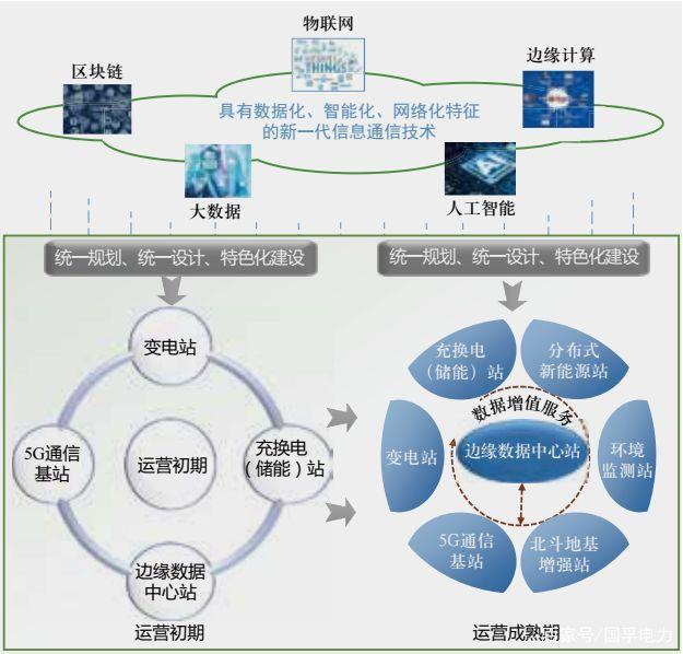 對(duì)于規(guī)劃及建設(shè)期,為避免規(guī)劃沖突、產(chǎn)權(quán)糾紛等問(wèn)題,方便后期運(yùn)營(yíng),應(yīng)采用“統(tǒng)一規(guī)劃、統(tǒng)一設(shè)計(jì)、特色化建設(shè)”的模式。由電網(wǎng)企業(yè)或其他電力基礎(chǔ)設(shè)施產(chǎn)權(quán)單位依據(jù)電力場(chǎng)站、桿塔溝道資源情況,統(tǒng)籌平衡各站建設(shè)需求,對(duì)邊緣數(shù)據(jù)中心站、充換電(儲(chǔ)能)站、5G通信基站、北斗地基增強(qiáng)站等在電力基礎(chǔ)設(shè)施上的空間布局、配套供電系統(tǒng)等進(jìn)行統(tǒng)一規(guī)劃和設(shè)計(jì)?;诖?,可由電網(wǎng)企業(yè)、多站投資主體、具有電力及信息通信等行業(yè)的跨行業(yè)融合化建設(shè)優(yōu)勢(shì)的機(jī)構(gòu),依據(jù)各站建設(shè)需求進(jìn)行特色化建設(shè)。