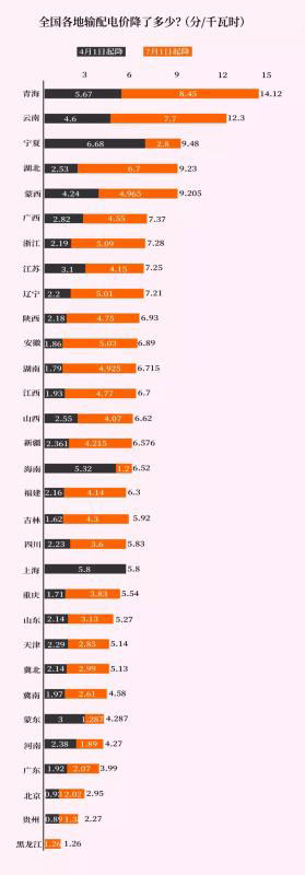 2、增值稅率和電網(wǎng)固定資產(chǎn)平均折舊率降低后,降低跨省跨區(qū)專項(xiàng)工程輸電價(jià)格;
