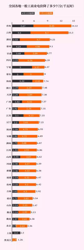 為落實(shí)《政府工作報(bào)告》關(guān)于一般工商業(yè)平均電價(jià)再降低10%的要求,國家發(fā)展改革委今年先后發(fā)布兩批措施降低一般工商業(yè)10%電價(jià),第一批措施為電網(wǎng)增值稅率由16%降至13%,全部讓利于下游,該措施于4月1日執(zhí)行。第二項(xiàng)措施將于7月1日執(zhí)行,主要有四個(gè)方面: