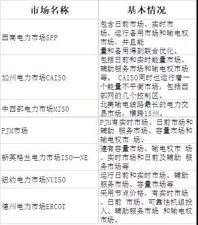 美國的七個批發(fā)電力市場