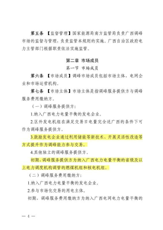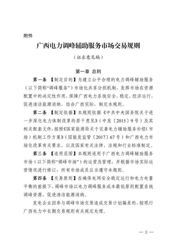 7月3日,南方能監(jiān)局印發(fā)《廣西電力調(diào)峰輔助服務(wù)交易規(guī)則(征求意見稿)》。文件規(guī)定,在市場開啟初期,調(diào)峰服務(wù)提供方為納入廣西電力電量平衡的省級及以上電力調(diào)度機(jī)構(gòu)調(diào)管的燃煤機(jī)組和核電機(jī)組。