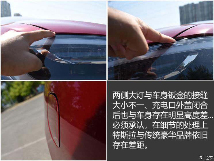 兩側(cè)大燈與車身鈑金的接縫存在不勻的問題,充電口外蓋閉合后也與車身存在明顯高度差...如果仔細“找碴”,這樣的細節(jié)做工問題在這臺提車里程僅18km的試駕車上并不鮮見,這對于一臺售價超過80萬元的豪華車型來說實屬不該。只能說當下的特斯拉相比傳統(tǒng)豪華品牌,在某些方面還是存在著一些不足的。