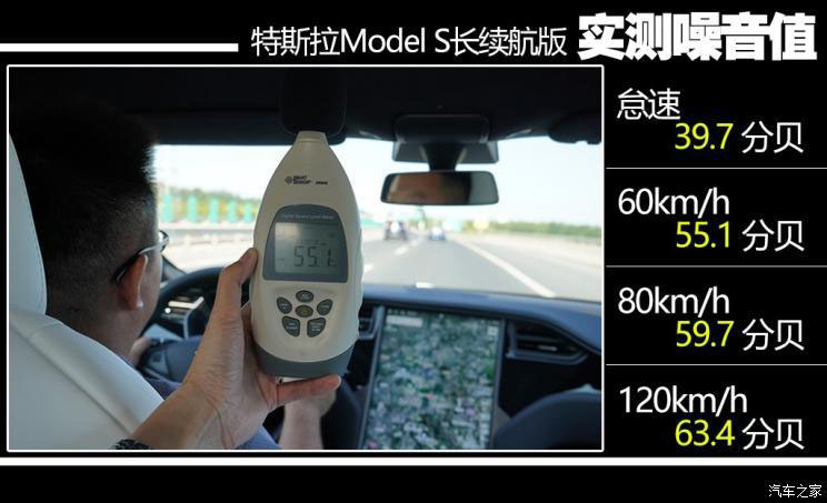 雖然在制動環(huán)節(jié)中表現(xiàn)一般,但主打舒適性的固特異Eagle Touring輪胎在噪音測試環(huán)節(jié)扳回一城,Model S的靜謐性整體表現(xiàn)較為出色,尤其在行駛狀態(tài)下,中低速和高速時的胎噪風躁都抑制得比較到位。