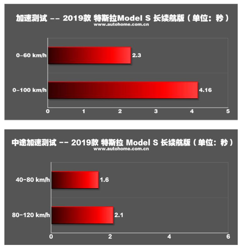 小結(jié):受測試當天環(huán)境所限沒能取得官方3.8s的加速成績,即便如此2019款特斯拉Model S長續(xù)航版還是表現(xiàn)出了相當不俗的加速性能;而對于其比較一般的制動成績而言,更換一套側(cè)重抓地性能的輪胎應該是最直接簡單的解決方案。
