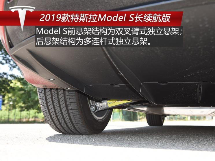 Model S的底盤被護板保護得非常嚴密,其前懸架結(jié)構(gòu)為雙叉臂式獨立懸架 后懸架結(jié)構(gòu)為多連桿式獨立懸架,Model S配備自適應智能懸架,可由車主自主調(diào)節(jié)或系統(tǒng)根據(jù)路況信息及駕駛員操作來自動調(diào)節(jié)高度和阻尼。