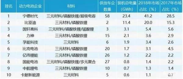 我國動(dòng)力電池市場繼續(xù)向頭部企業(yè)集中。以2018年動(dòng)力電池裝機(jī)量為參考,十大龍頭企業(yè)包括:寧德時(shí)代、比亞迪、國軒高科、力神、孚能科技、比克電池、億緯鋰能、國能電池、中航鋰電、卡耐新能源。
