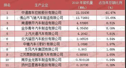 2019年上半年,中通客車與佛山飛馳繼續(xù)領(lǐng)銜,兩家公司的裝機(jī)量合計(jì)達(dá)到上半年我國燃料電池汽車裝機(jī)總量的65.12%。南通皋開汽車制造有限公司悄然崛起,以微弱優(yōu)勢占得第3席位。金華青年汽車制造有限公司、上汽大通汽車有限公司則分列第4、第5名。