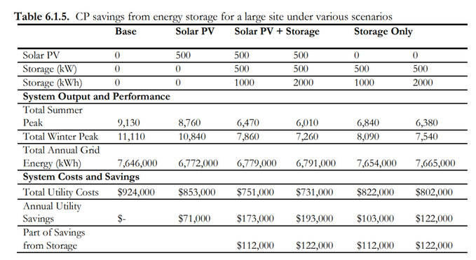 在演示的一個模型中,相對于“重疊峰值”(CP)定價,從太陽能發(fā)電設(shè)施,太陽能+儲能、獨(dú)立部署儲能系統(tǒng)的各種配置中展示了其節(jié)省的成本。例如一個裝機(jī)容量為500kW的太陽能發(fā)電設(shè)施和一個500kW/2MWh儲能系統(tǒng)每年節(jié)省電力費(fèi)用為193,000美元。