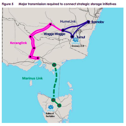 在最新的研究中,澳大利亞能源市場運(yùn)營商(AEMO)確定了具體的區(qū)域內(nèi)和區(qū)域之間輸電設(shè)施投資,以便將抽水蓄能項(xiàng)目的電力提供給用戶。在2022年Liddell電站關(guān)閉后,Snowy抽水蓄能項(xiàng)目和悉尼(HumeLink)之間輸電能力的提高將使新南威爾士州用戶以最低成本獲得最大的電力可靠性。澳大利亞能源市場運(yùn)營商(AEMO)發(fā)現(xiàn),在區(qū)域之間,加強(qiáng)Snowy抽水蓄能項(xiàng)目與維多利亞州西北部和墨爾本(Keranglink輸電線路)以及塔斯馬尼亞和維多利亞之間之間的轉(zhuǎn)移能力也可帶來好處。