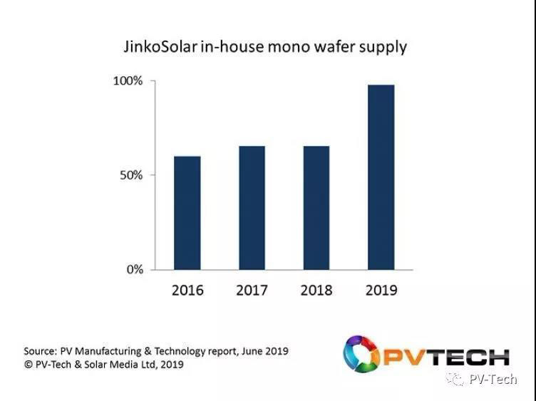 晶科能源2019年的核心技術(shù)舉措是擺脫對(duì)其他單晶硅片國內(nèi)供應(yīng)商的依賴。2019年下半年,公司正在迅速成長(zhǎng)為行業(yè)領(lǐng)軍單晶組件供應(yīng)商。