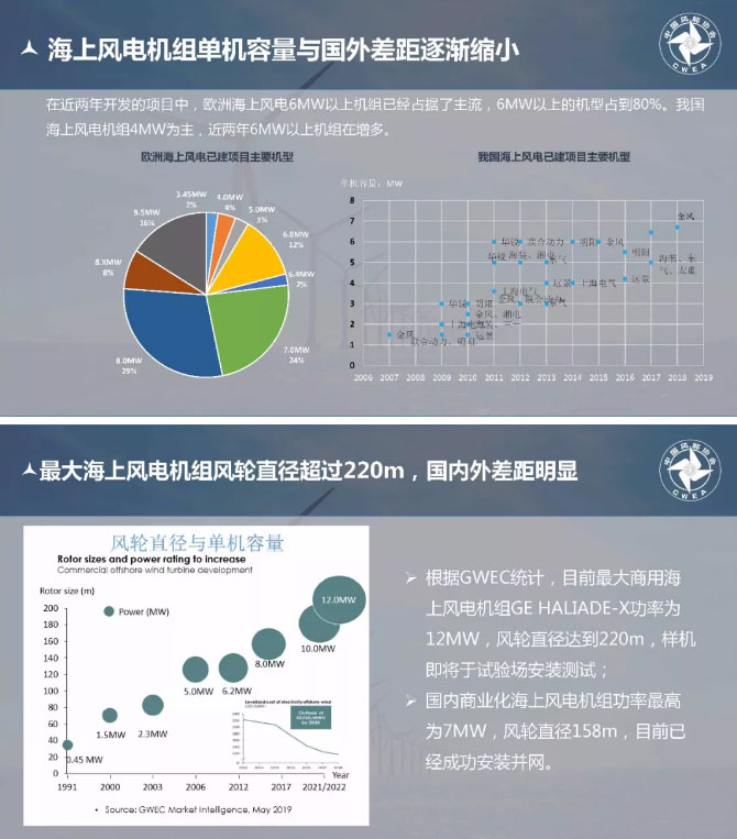 秦海巖認(rèn)為我國與歐洲海上風(fēng)電技術(shù)差距正在逐步縮小,海上風(fēng)電機組單機容量正在逐步提高。對于大兆瓦機組經(jīng)濟性不高的問題,秦海巖表示,大兆瓦機組是海上風(fēng)電的必然趨勢,可以大幅提高發(fā)電量,節(jié)約運維成本,雖然目前成本較高,但隨著技術(shù)推動,大兆瓦機組成本將會變得越來越低,目前有些企業(yè)已經(jīng)開始研究15MW的風(fēng)機了。