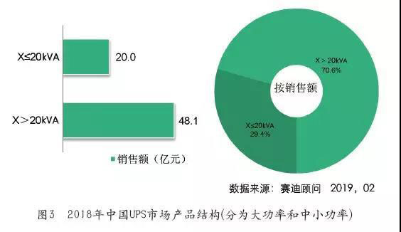 賽迪顧問(wèn)將中國(guó)UPS市場(chǎng)細(xì)分為中小功率市場(chǎng)和大功率市場(chǎng)。中小功率市場(chǎng)是指電容量在20kVA以下的UPS產(chǎn)品,其中容量在10kVA以下的產(chǎn)品為小功率機(jī),而容量在10~20kVA的產(chǎn)品為中功率機(jī);而大功率市場(chǎng)是指電容量在20kVA以上的UPS產(chǎn)品。