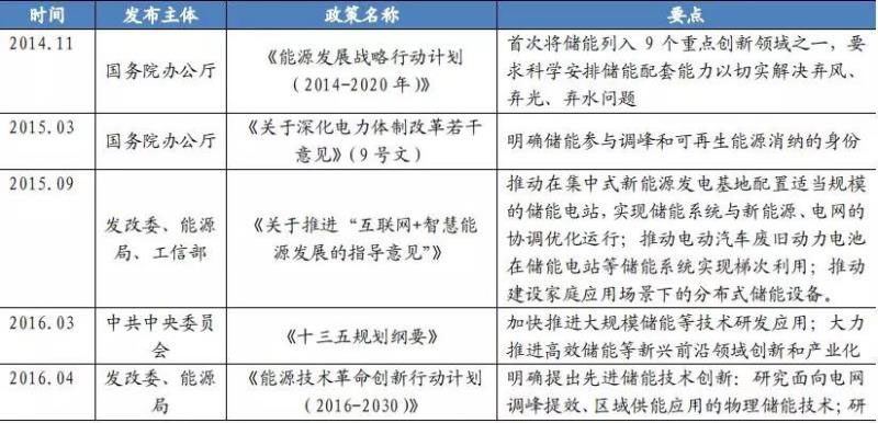 表 2:2016 年以來儲能扶持政策頻繁出臺