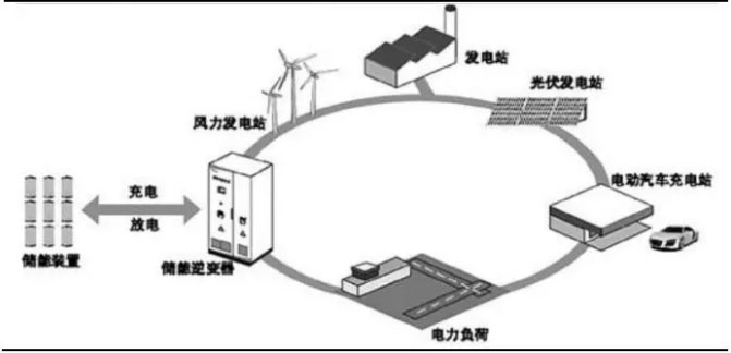 圖 1:儲能系統(tǒng)通過儲能逆變器實現(xiàn)電能的充放電