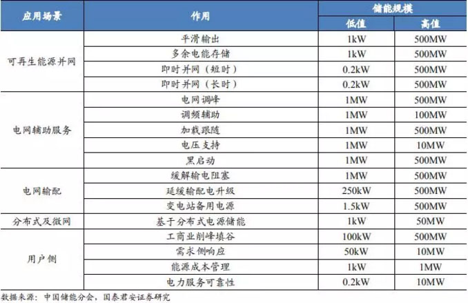 表 4:儲能應(yīng)用場景廣泛,包括電網(wǎng)側(cè)、可再生能源并網(wǎng)、用戶側(cè)等方面