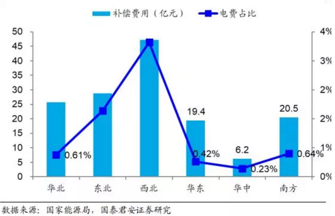 圖 2:2018 年電力輔助服務(wù)補償費用地區(qū)分布
