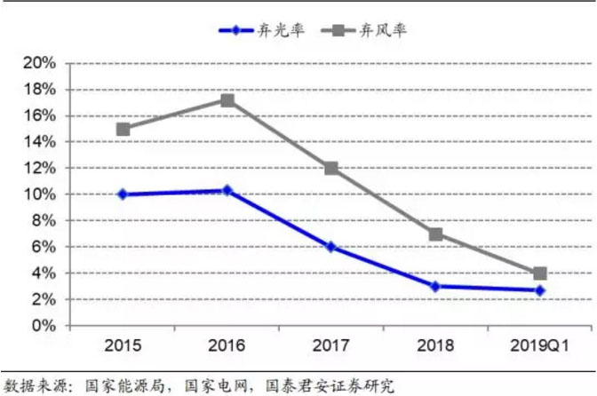 圖 5:2016 年至今中國棄光率、棄風(fēng)率逐年下降