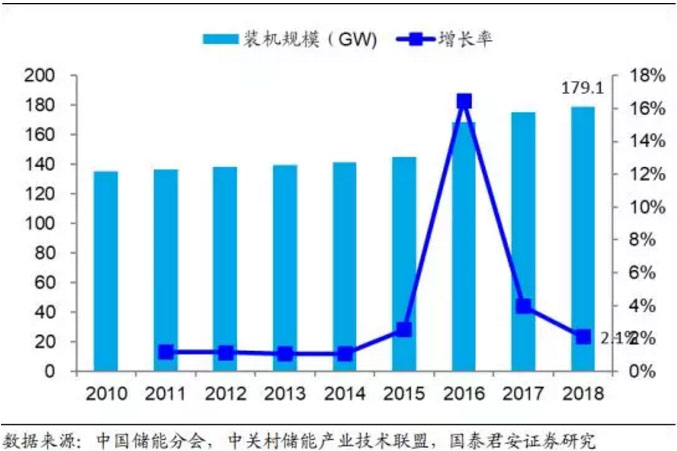 圖 15:2018 年我國抽水蓄能裝機規(guī)模同比增長 5.3%