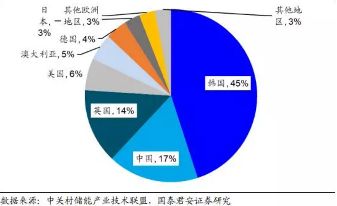 圖 16:韓國位列 2018 年全球新增電化學(xué)儲能市場裝機規(guī)模第一