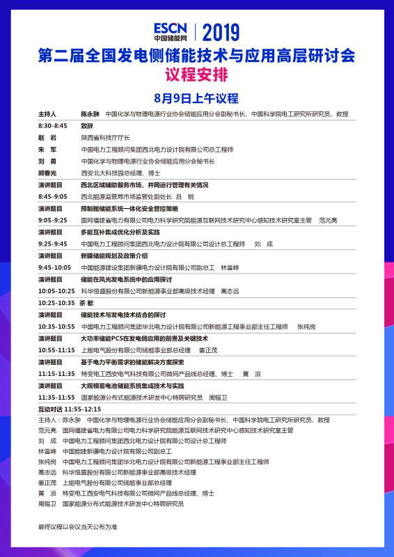 中國儲能網(wǎng)訊:為進一步推進儲能在發(fā)電側(cè)上的項目規(guī)劃、安全施工、系統(tǒng)集成技術(shù)應(yīng)用、運營模式、電網(wǎng)接入、標(biāo)準(zhǔn)體系、風(fēng)光儲電站考核機制、調(diào)度模式、儲能項目備案、審批流程和市場環(huán)境等方面展開深入討論,中國化學(xué)與物理電源行業(yè)協(xié)會儲能應(yīng)用分會聯(lián)合全國微電網(wǎng)與分布式電源并網(wǎng)標(biāo)準(zhǔn)化技術(shù)委員會、中國電力工程顧問集團西北電力設(shè)計院有限公司、西安北大科技園、中國科學(xué)院電工研究所儲能技術(shù)組、深圳市科陸電子科技股份有限公司等單位聯(lián)合主辦“第二屆全國發(fā)電側(cè)儲能技術(shù)與應(yīng)用高層研討會”,現(xiàn)將有關(guān)議程通知如下: