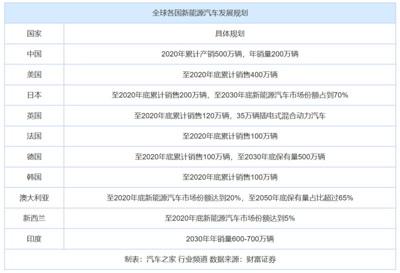 第二個是全球各國新能源汽車發(fā)展規(guī)劃,各國的2020規(guī)劃,普遍都在百萬量級以上。