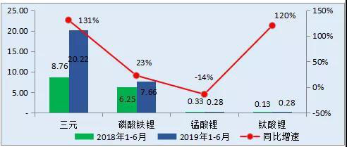 2019上半年新能源汽車各電池類型裝機(jī)電量分析(GWh)