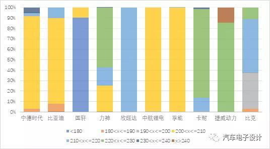 方殼電池:方殼電芯主流是在210Wh/kg左右,2019年最新裝車的那一代已經(jīng)進(jìn)入230Wh/kg以上。