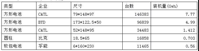 表1 2019年上半年的主流電芯