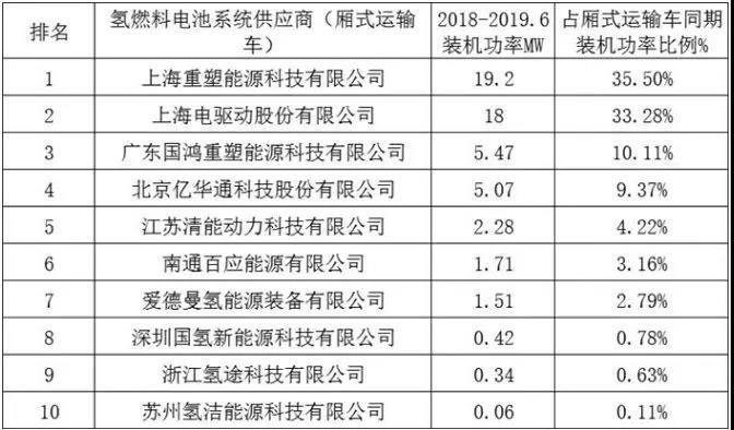 表5 2018、2019燃料電池企業(yè)客貨車對(duì)比