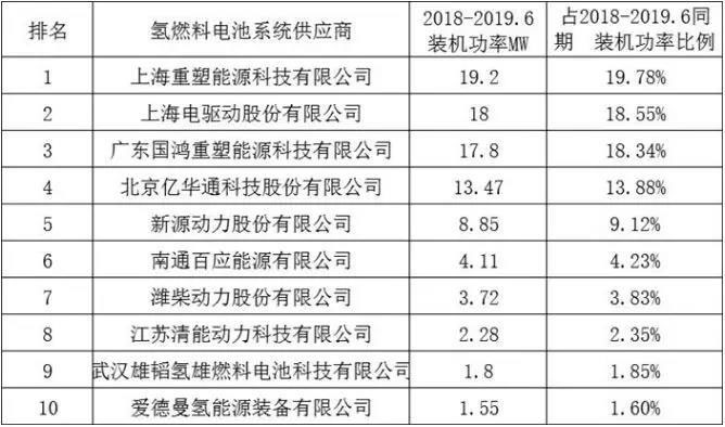 燃料電池企業(yè)情況:頭部效應(yīng)已現(xiàn)