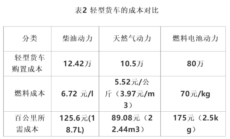 小型貨車(chē)則以“氫車(chē)熟路”示范運(yùn)行中使用的東風(fēng)EQ5080XXYTFCEV1為例(數(shù)據(jù)來(lái)源:http://www.qhcyzb.com/news/shownews.php?lang=cn&id=76),該車(chē)的百公里耗氫量為2.5公斤。售價(jià)約為140萬(wàn)元,國(guó)家補(bǔ)貼30萬(wàn),與客車(chē)類(lèi)似,地方補(bǔ)貼一般為1:1,因此,實(shí)際購(gòu)車(chē)成本約為80萬(wàn)元。