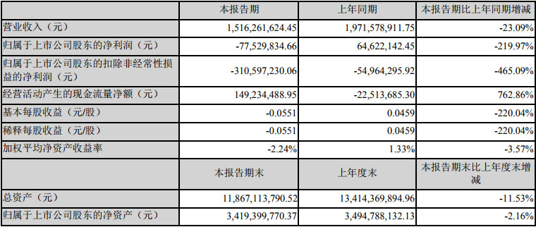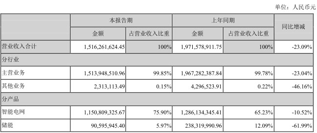 由于宏觀經(jīng)濟增長放緩,外部融資環(huán)境偏緊,金融市場資金成本大幅上升,公司營運資金較緊張,訂單 交付情況不及預期,報告期內,公司實現(xiàn)營業(yè)收入15.16億元,同比下降23.09%,歸屬于上市公司股東的凈利潤為-7,752.98 萬元,同比下降219.97%。報告期內儲能業(yè)務營業(yè)收入同比減少 14,772.40 萬元,下降 61.99%,主要系受流動性影響,公司儲能產(chǎn)品供應鏈整體受到一定限制,產(chǎn)品交付延緩,業(yè)務規(guī)模有所下降。