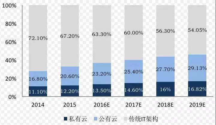 還有一點(diǎn)需要注意,并不是所有的企業(yè)應(yīng)用都適合遷移到公共的云平臺之上,從實(shí)際來看很多企業(yè)出于業(yè)務(wù)屬性的考慮選擇的是私有云,這些私有云平臺一般是直接部署在用戶自己的數(shù)據(jù)中心或者部署到托管的數(shù)據(jù)中心中。從近幾年的數(shù)據(jù)來看私有云市場在增長率上不如公有云,但私有云的市場的基數(shù)大,導(dǎo)致目前私有云市場的收入目前還是高于公有云的,比如根據(jù)451 Research 2018年的調(diào)查,2018年私有云市場的營收比公有云市場的營收要高出43%。