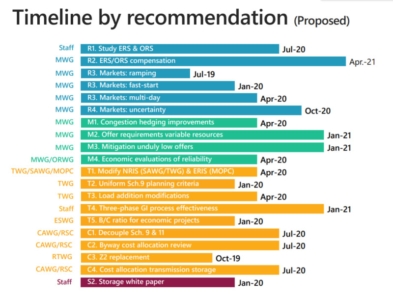 藍色項目涉及可靠性建議,綠色項目涉及能源市場,黃色項目涉及規(guī)劃和成本分配計劃,紫色項目涉及戰(zhàn)略建議。