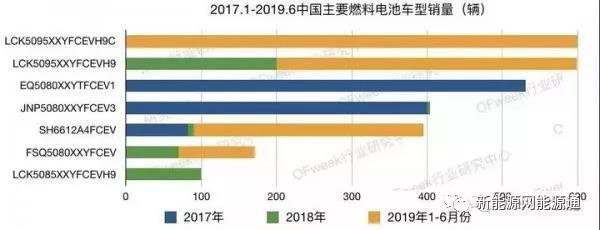 根據(jù)OFweek行業(yè)研究中心統(tǒng)計(jì)數(shù)據(jù)顯示,我國(guó)2017年-2019年6月份銷售的燃料電池共計(jì)3689輛,包含了19家汽車企業(yè)的53款車型。2017年以來(lái),各品牌銷量變動(dòng)較大,如2017年生產(chǎn)銷售燃料電池最多的東風(fēng)汽車在近兩年銷量下滑明顯。