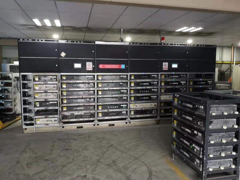 換電站工作人員介紹,現(xiàn)階段電池壽命一般標(biāo)稱能充1000至1200次,如果使用快充只能到800次甚至更少,換電站的實(shí)際數(shù)據(jù)是1200次,因?yàn)閾Q電站充電是以0.35C、0.4C的充電倍率慢充的,對電池的損耗控制到最小。
