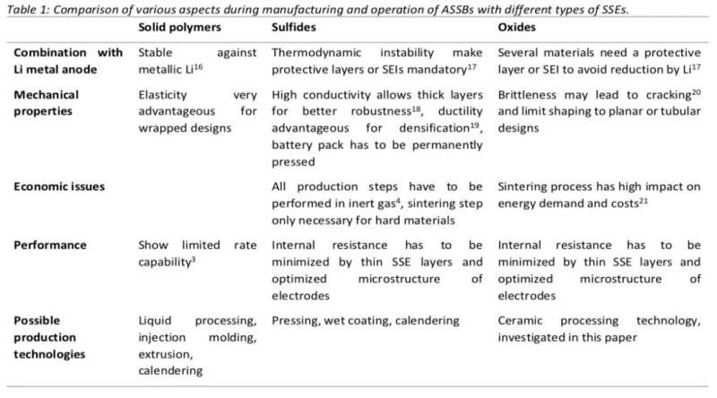 固態(tài)鋰電池的三種技術(shù)路線之爭由來已久。在固態(tài)電池技術(shù)發(fā)展的早期,由于固態(tài)電解質(zhì)材料電導率相對較低,研發(fā)的重點多數(shù)集中在提高固態(tài)電解質(zhì)的電導率方面,因此具有高離子電導率的硫化物電解質(zhì)和氧化物固態(tài)電解質(zhì)吸引了廣泛關(guān)注。但是隨著技術(shù)的不斷進步,人們發(fā)現(xiàn)電導率已經(jīng)不是制約固態(tài)電池發(fā)展的主要因素【5,11】,界面問題和量產(chǎn)工藝逐漸成為固態(tài)電池需要克服的下一難點。硫化物和氧化物類電解質(zhì)機械加工性能較差,界面接觸問題和量產(chǎn)化工藝問題遲遲無法解決,而聚合物電解質(zhì)由于具有優(yōu)良的加工特性和良好的界面接觸成為三種技術(shù)路線中最有希望的一種。